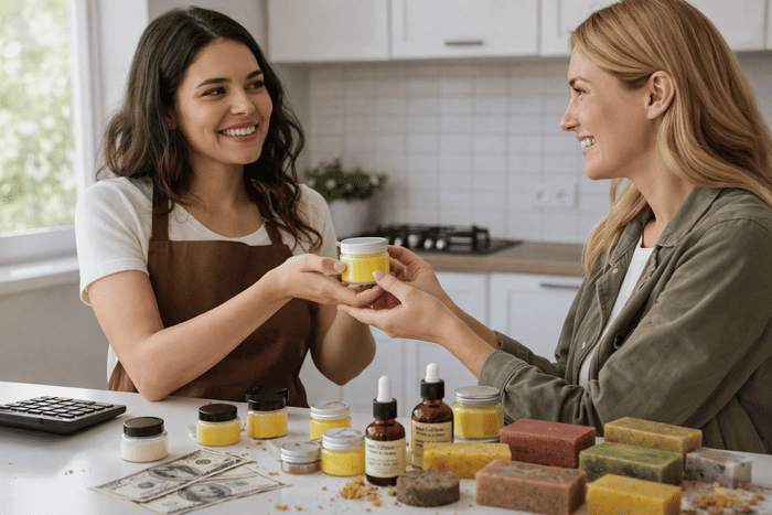 Guía práctica de precios para cosméticos artesanales, enseñando cómo calcular los costos, definir los márgenes de beneficio y aplicar estrategias inteligentes para vender más valor y rentable.